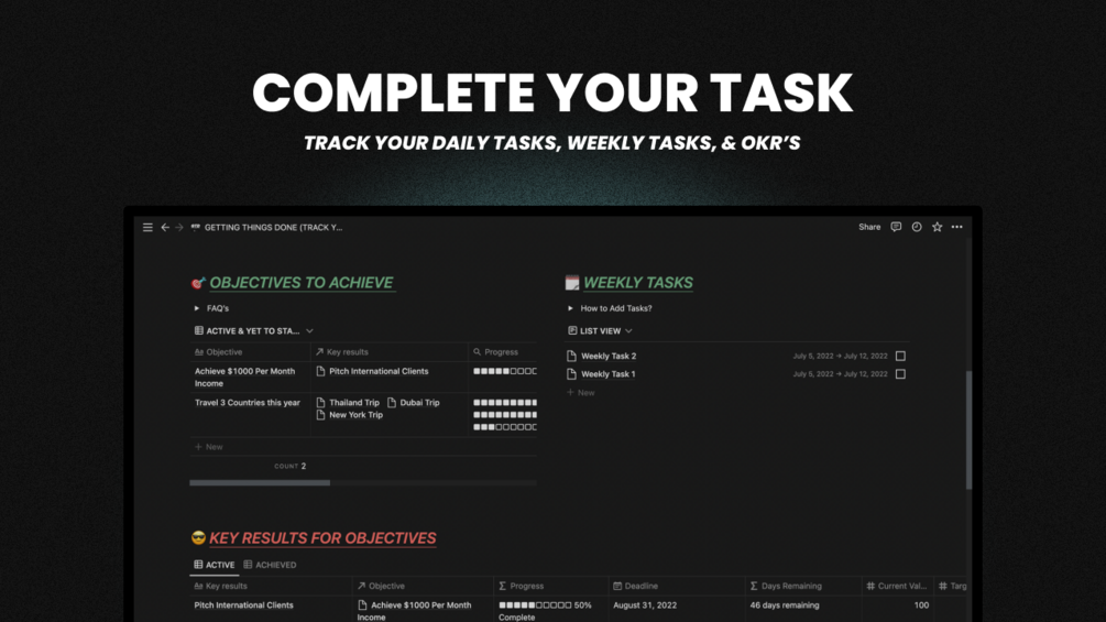 The Pro version comes with Monthly Tasks and Objective Key results.